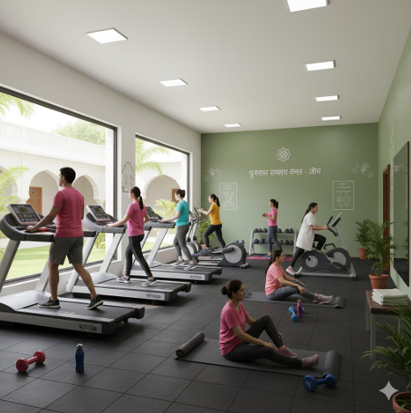 - Courtyard Games & Activities – Relaxed outdoor space for walking, stretching, and group interactions